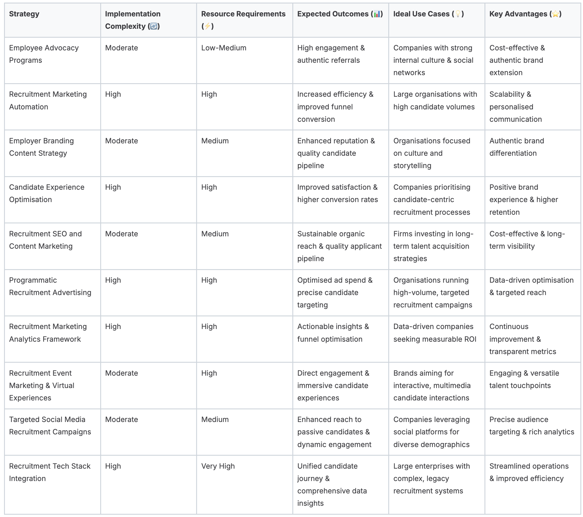 Facing challenges in attracting top talent? This article offers ten effective recruitment marketing strategies to help UK businesses enhance their hiring approach. Discover how to boost your employer brand, refine your recruitment process, and secure the best candidates. These practical strategies, from employee advocacy programs and recruitment marketing automation to targeted social media campaigns and recruitment SEO, can improve your talent acquisition efforts in 2025 and beyond.